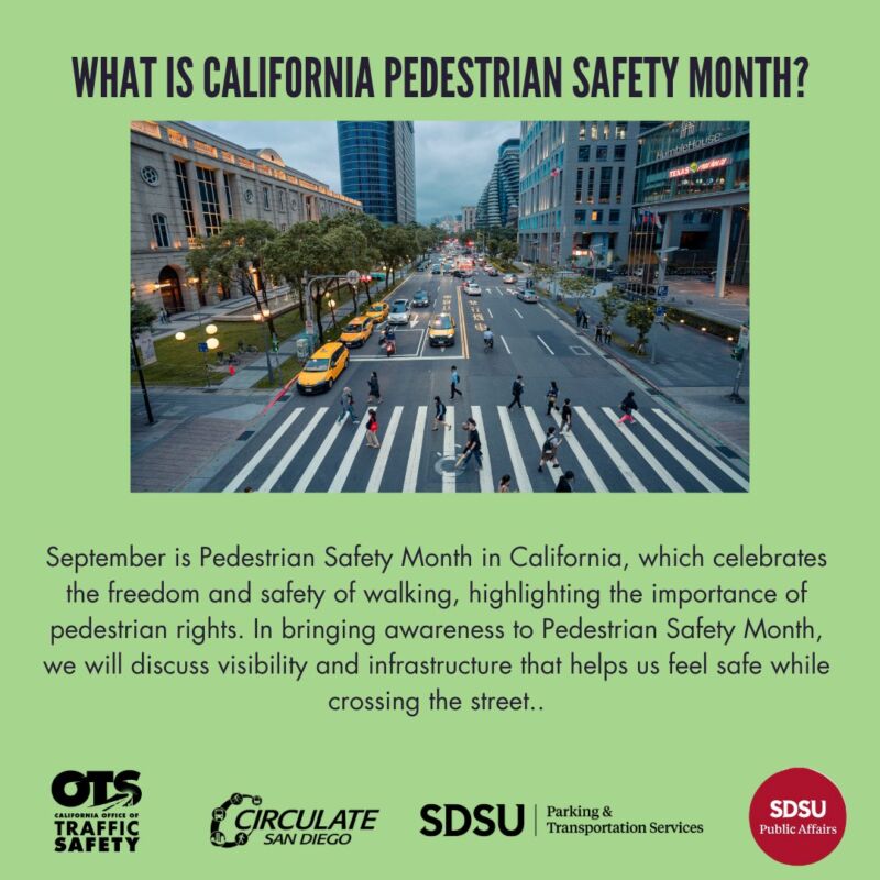 September is Pedestrian Safety Month in California! Let’s celebrate the freedom of walking by raising awareness about visibility and infrastructure that keep us safe while crossing the street.