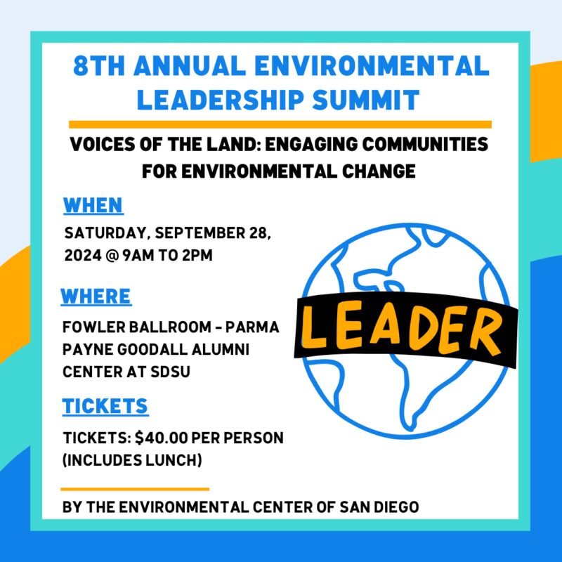 Get tickets to the 8th Annual Environmental Leadership Summit this Saturday 9/28. Tickets: https://sandiegoeco.org/8th-annual-environmental-leadership-summit/